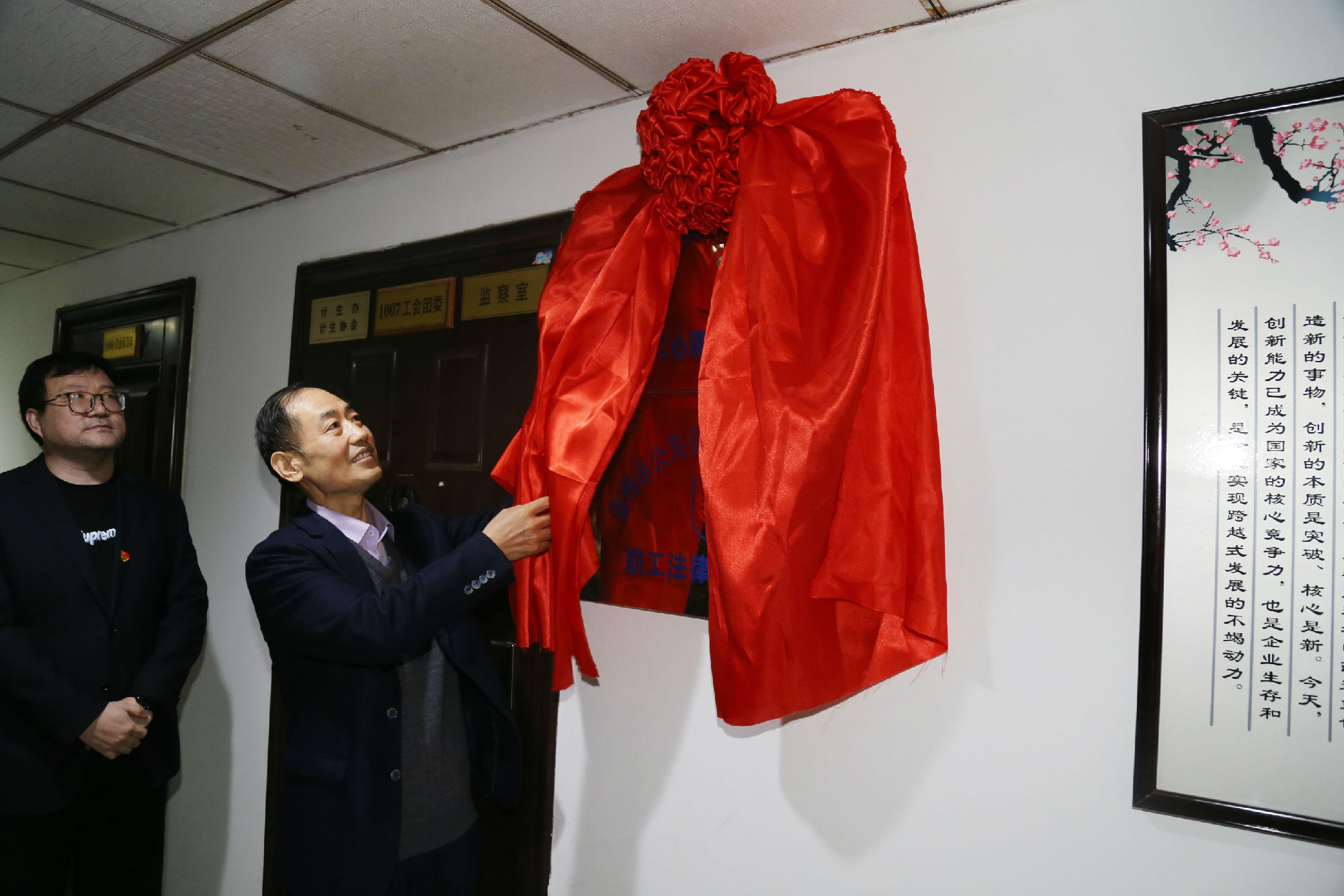為進一步落實公交“家文化”建設(shè)工程,幫助職工維護自身合法權(quán)益,關(guān)注職工心理健康,推動創(chuàng)建幸福和諧企業(yè),3月1日上午,徐州公交集團職工法律援助中心、職工心理健康疏導(dǎo)中心在公交大廈10樓掛牌成立。集團黨委書記、董事長高守江,紀(jì)委書記、工會主席袁夫松現(xiàn)場揭牌。